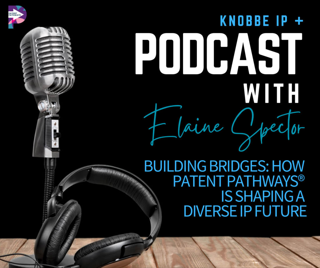 In a recent episode of the Knobbe IP+ podcast, Elaine Spector, Partner at Harrity & Harrity and advisory board member of Patent Pathways®, joined Terra Davis, Chief Diversity & Talent Development Officer at Knobbe Martens, for a powerful conversation about increasing diversity in the patent profession.