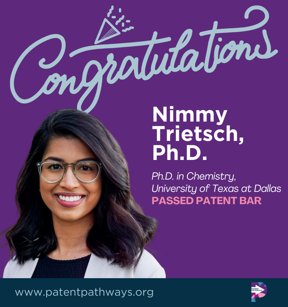 Nimmy’s success represents the heart of our mission—to open doors for talented individuals with STEM degrees and provide real access to careers in patent law.