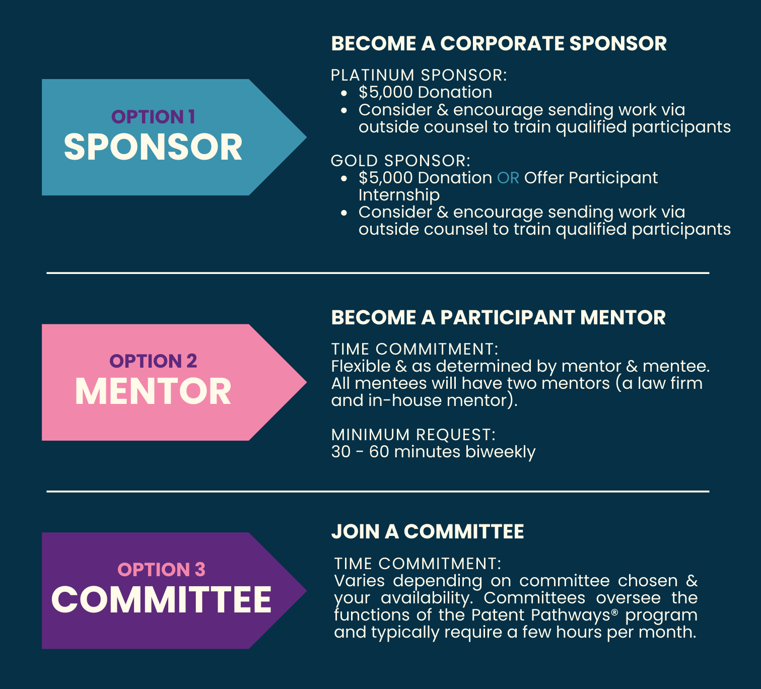 Looking for more ways to get involved? Harrity is looking for mentors, partners, & sponsors for various virtual patent programs!